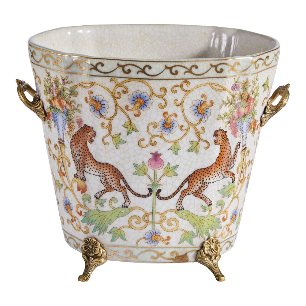 Кашпо с растительным и животным орнаментом на бронзовых ножках Turquoise Blooming Garden Мульти Бронза в Тюмени | Loft Concept