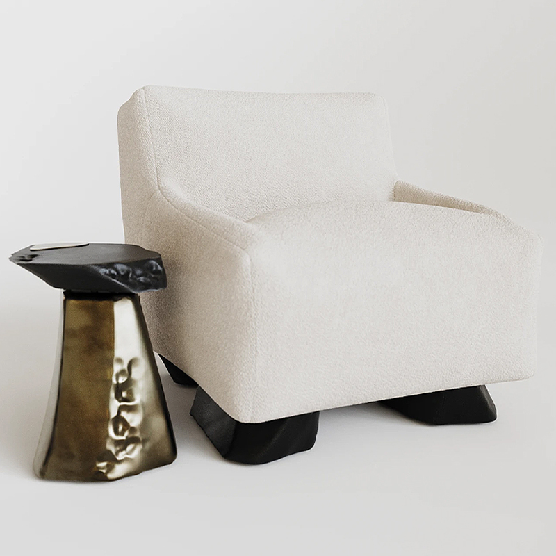Кресло Cannes с мягкой обивкой букле молочного цвета  Молочный Черный в Тюмени | Loft Concept