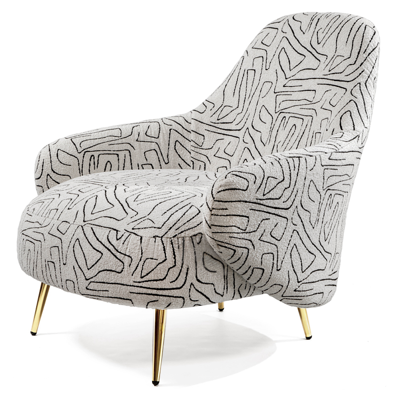 Кресло мягкое с принтом на золотистых ножках Onlooker Черно-белый Золотой в Тюмени | Loft Concept