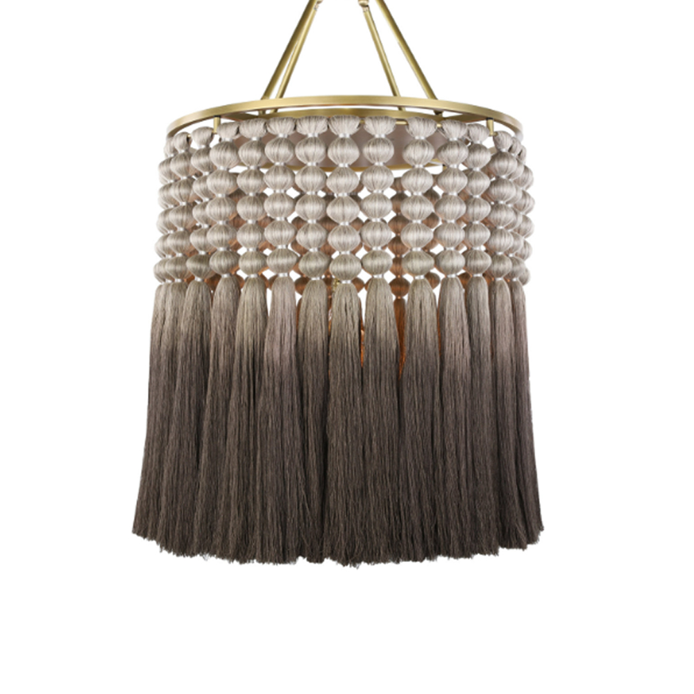 Люстра плетеная с кисточками на золотистом каркасе Boho Tassel Chandelier Коричневый Латунь в Тюмени | Loft Concept