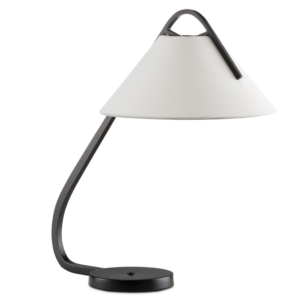Настольная лампа с черным каркасом и белым тканевым абажуром в форме конуса Stylish Solution