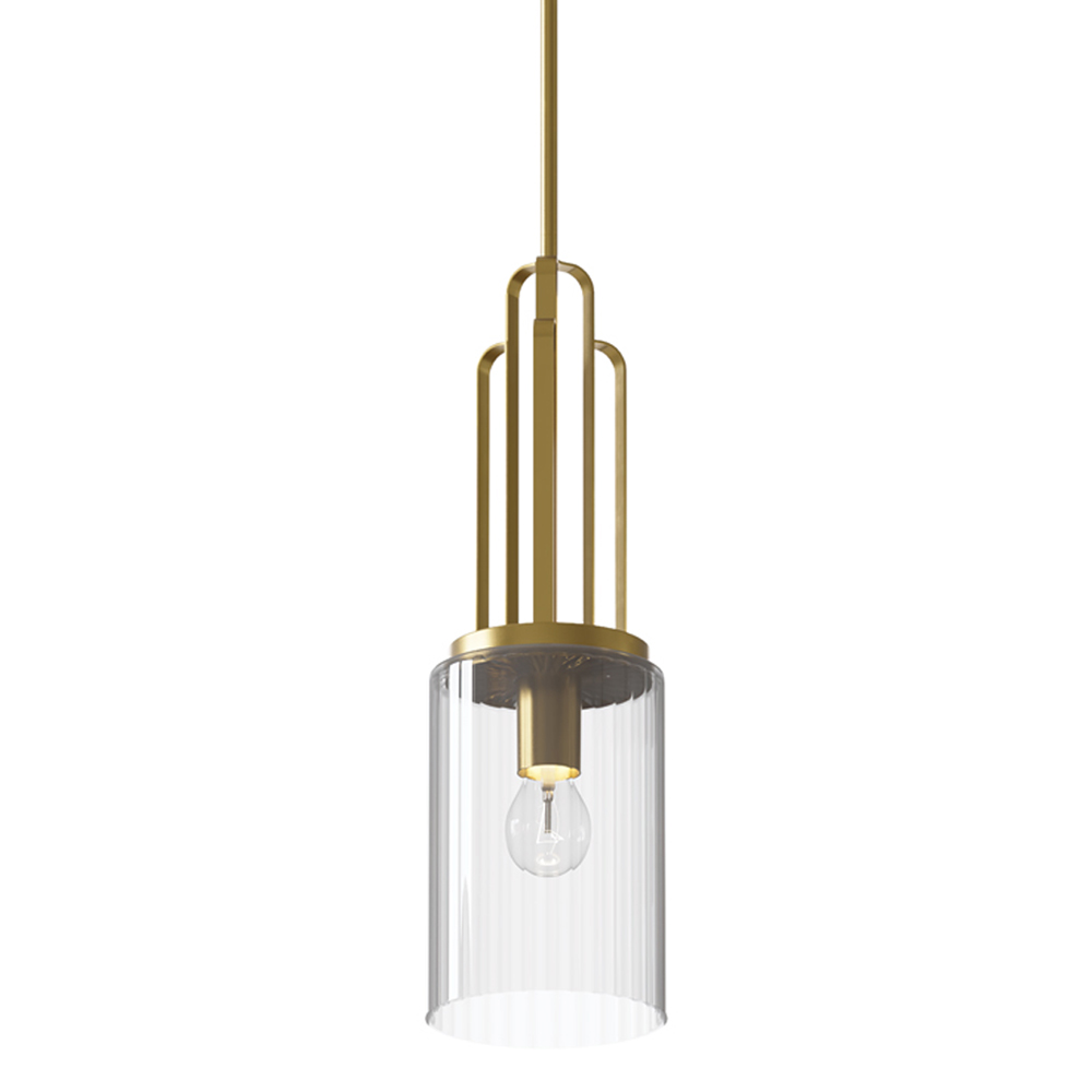 Подвесной светильник с прозрачным рифленым цилиндрическим плафоном Kichler Латунь Прозрачное Стекло Никель в Тюмени | Loft Concept