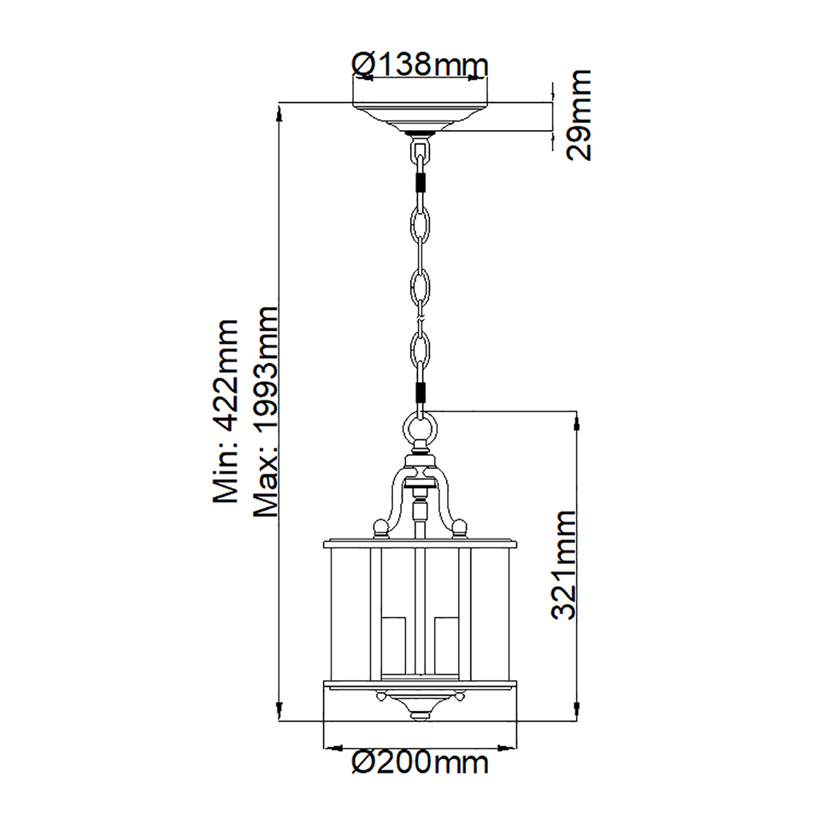 • Размер 3 лампы - мин. - макс. длина: 42.2 - 199.3 см. Д20 х В32.1 см.